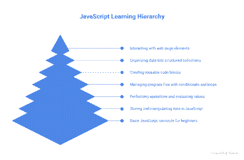 To make learning less overwhelming, here’s a hierarchical diagram of JavaScript learning flow for PHP developers: