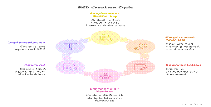 Description: This infographic provides a simple overview of the BRD lifecycle, showing the iterative feedback loop critical for project success.