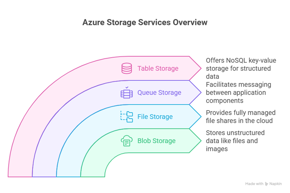 Azure Storage is the foundation for building scalable, secure, and high-performance cloud applications. Whether you are storing unstructured files, structured tables, messages for processing, or shared files, Azure Storage offers tailored services.