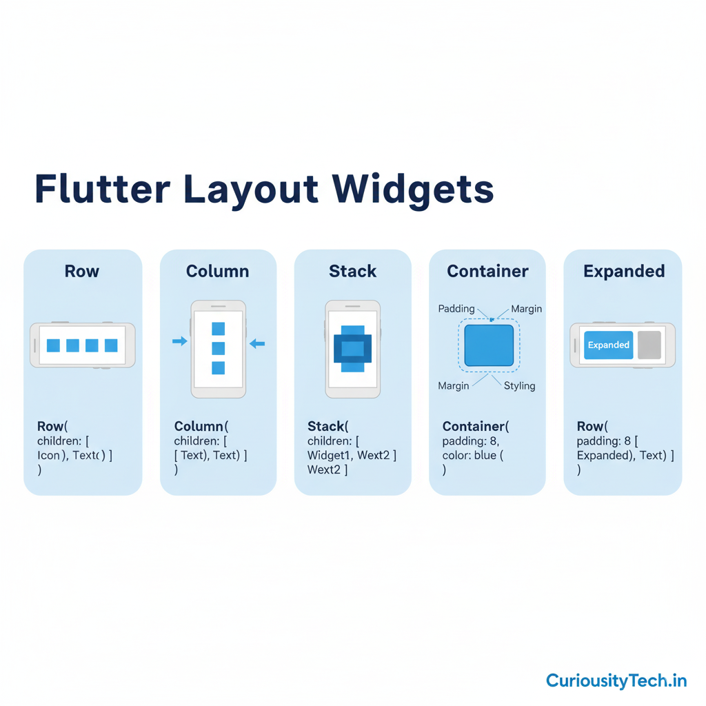 - Learn Layouts: Explore Rows, Columns, Stack, and Container for responsive UI.