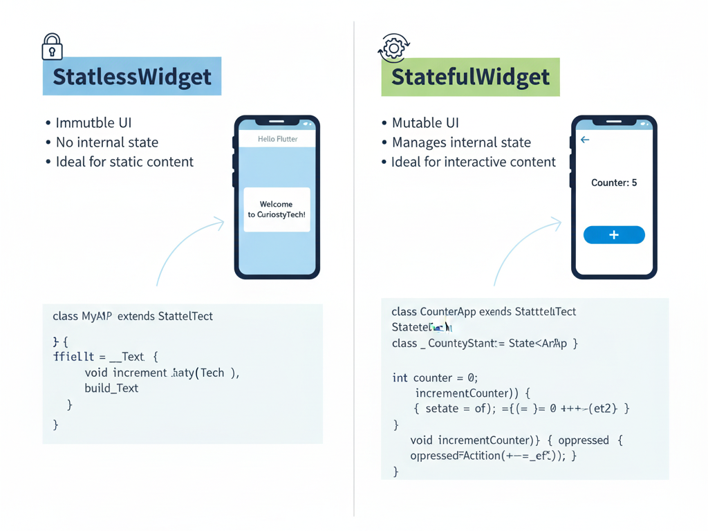 • StatefulWidget allows dynamic UI updates
