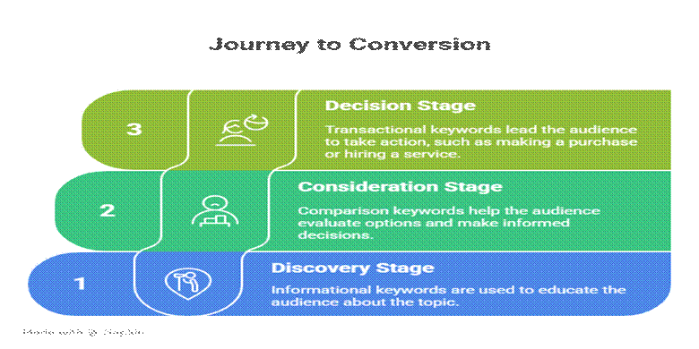 - Consideration Stage → Comparison Keywords (“Best keyword tools 2025”)