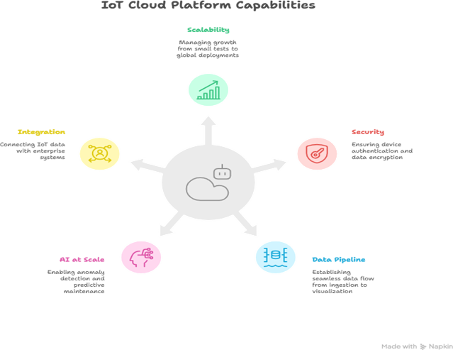 - Cloud Ingestion Layer: Platform (AWS, Azure, Google IoT Core).