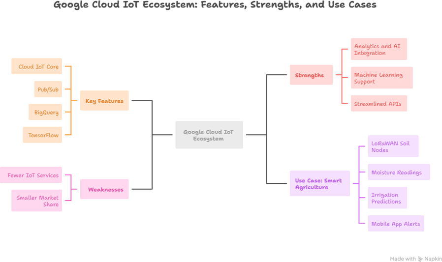 - Overestimating Google Cloud IoT’s IoT-native features — needs external service coupling for maturity.