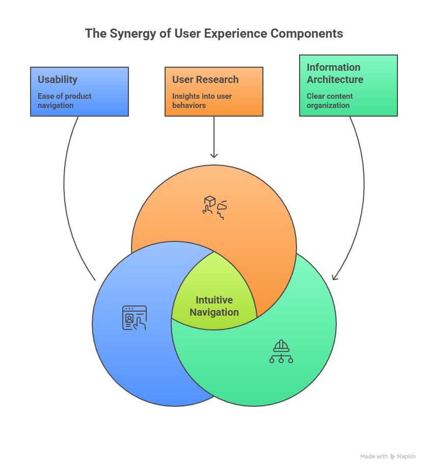 This structure shows how UX provides the framework and strategy, while UI brings it to life visually.