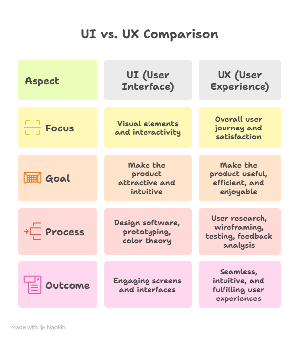 This infographic helps students quickly grasp the synergy between UI and UX.